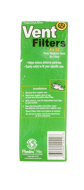 This 4” x 12” vent filter can easily be cut to fit floor registers. The filter prevents dust and airborne particles from entering the ductwork in your house, where they can damage your HVAC equipment and/or recirculate through your house.